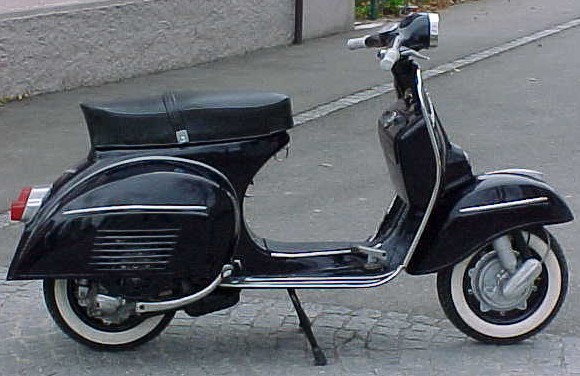 a Vespa SS180. Here's some pictures of a nice midnight blue one that