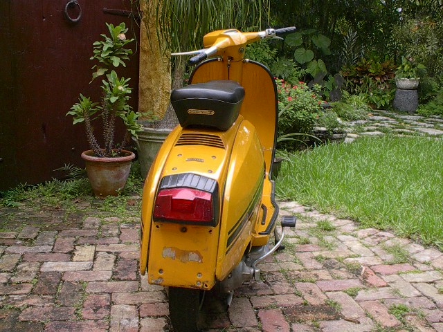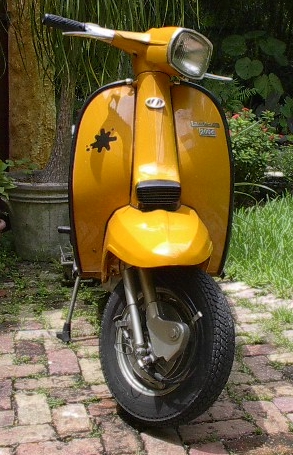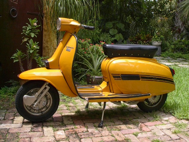 yellow super tuned Vespa 90 small frame. This has a Taffspeed built &