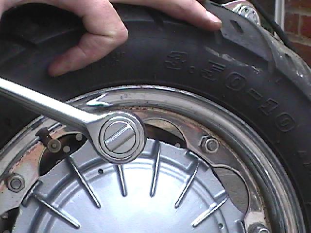 lift the front of the scooter up so you can remove the hub, stick a length of