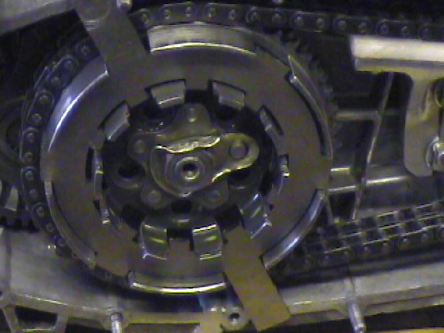 the clutch holding tool in preparation for tightening the drive side
