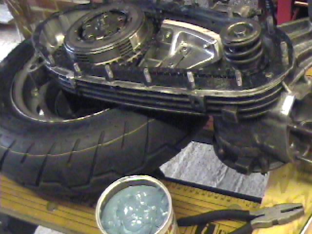 hardening gasket compound (Loctite 574 flange sealant) around both surfaces. Torque the 8mm